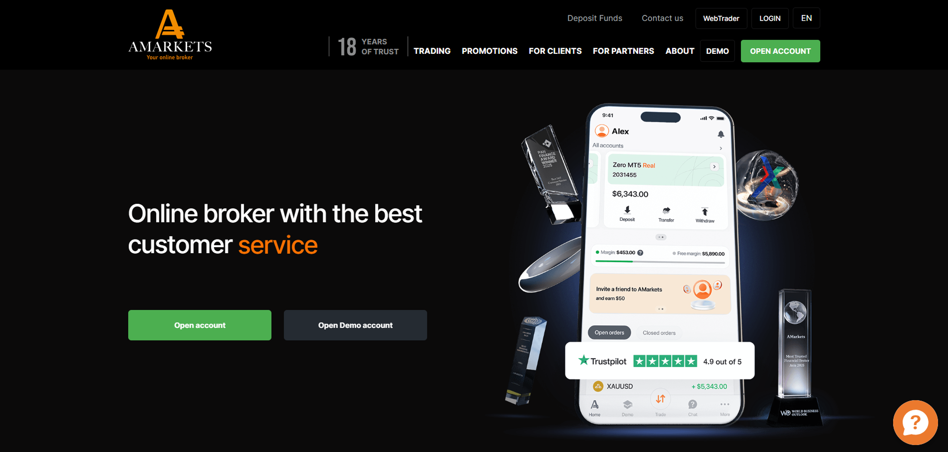 | Trading Platform | MT4/5, AMarkets App |